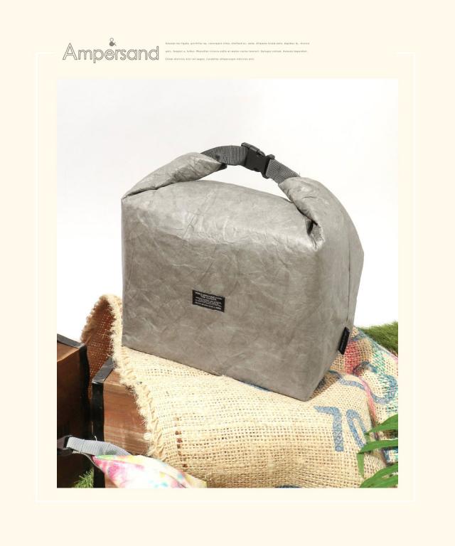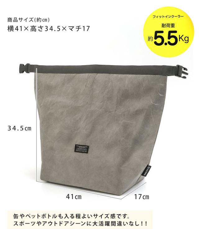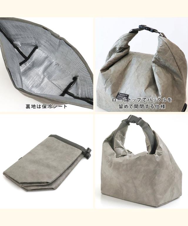 表地は耐久性のある軽い素材、裏地は保冷シートになっておりロールトップでバックル留めて開閉する仕様になっています。