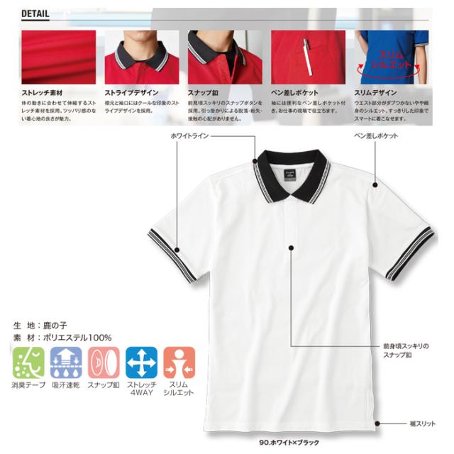 ポロシャツ 小倉屋 POLOIZM 半袖 セーフティ スリムタイプ 吸汗 速乾 スナップ釦 4WAYストレッチ 3701 SS〜6L 5色【送料無料】メンズ レディース 大サイズ ペン差しポケット ビジネス ウエア 仕事着 通勤 通学 事務服 保育士 看護師 ゴルフ 小倉屋ポロシャツ agesugi_sfa