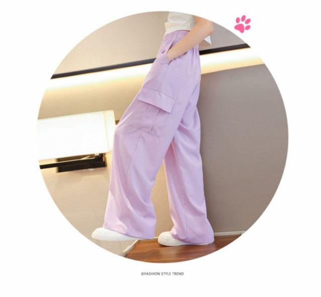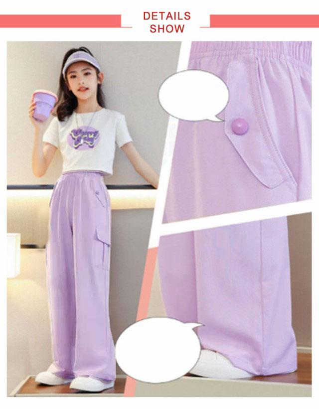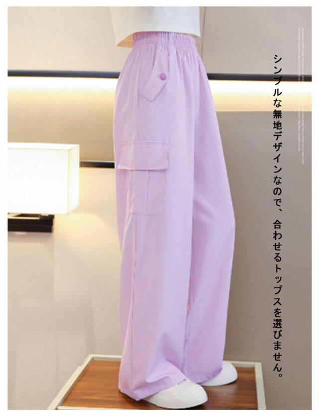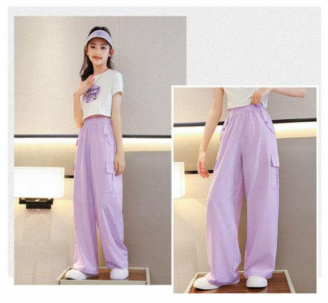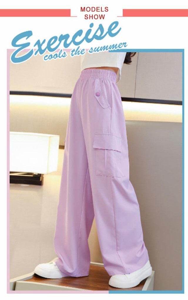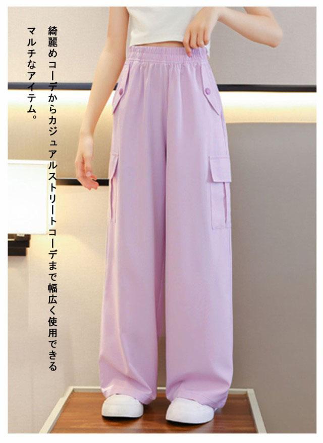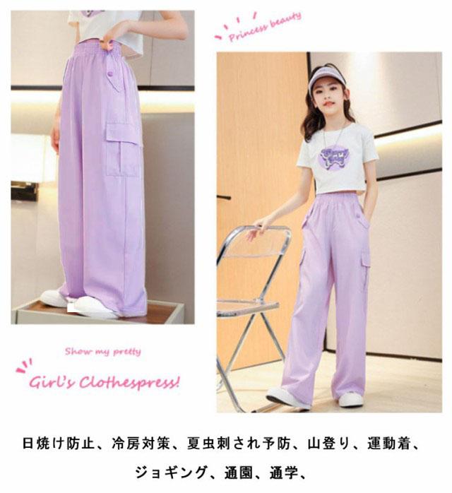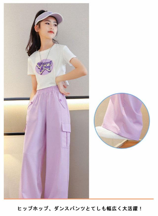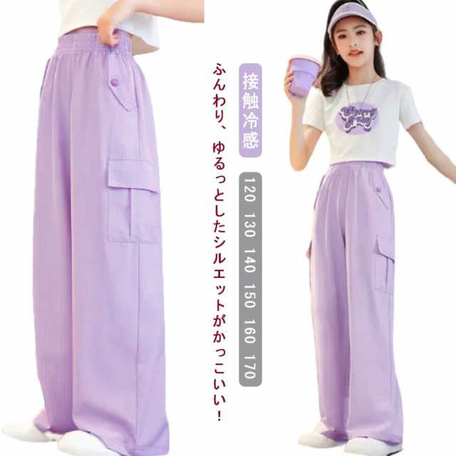 キッズ 女の子 カーゴパンツ ワイドパンツ 韓国 子供服 ロングパンツ 長ズボン 接触冷感 アイスシルク カジュアル ジュニア ボトムス ダンス衣装 ヒップホップ ガールズ 子ども服 HIPHOP パープル 紫 120 130 140 150 160 170