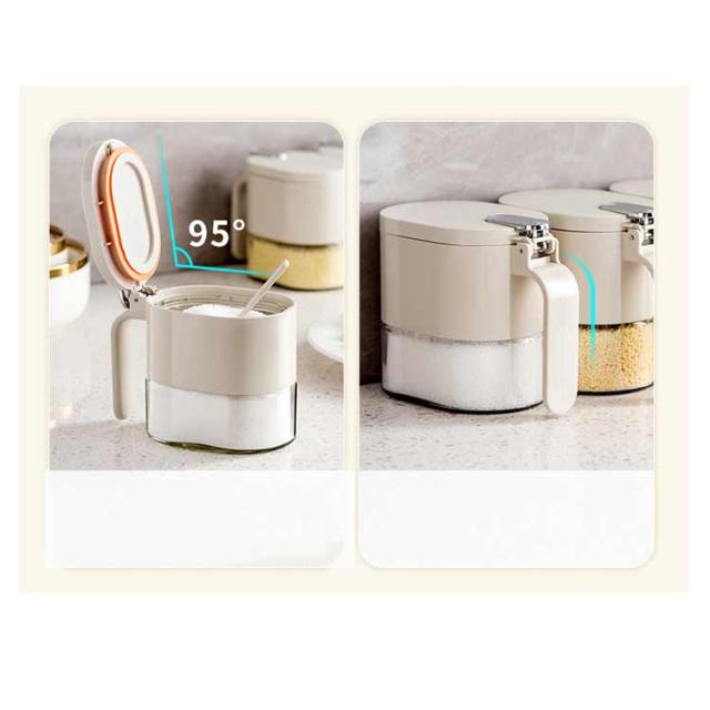 | 半透明のデザインで、調味料の量が一目瞭然です。 効果的にほこりや湿気を防ぐことができます。 片手でオープンでき、スムーズに中の物を取り出せます。 砂糖・香辛料塩、コショウ、香辛料、コーンスターチ、チキンスープパウダーなど、さまざまな調味料を保存できます。 | |