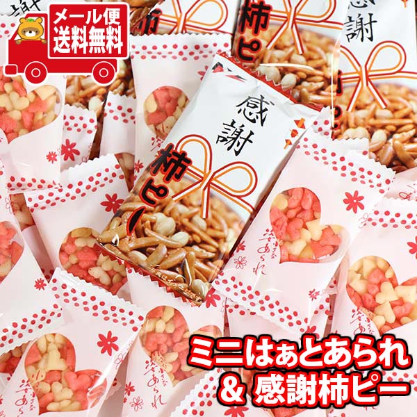 (メール便で全国送料無料) お菓子 詰め合わせ かわいいハートの形の小さな小さなあられ ミニはぁと(12コ)& 感謝柿ピー(20コ)詰め合わせ 心を込めて…贈り物に。 (omtmb9244)【個包装 小袋 母の日 バレンタイン お祝い お礼 お返し 感謝】