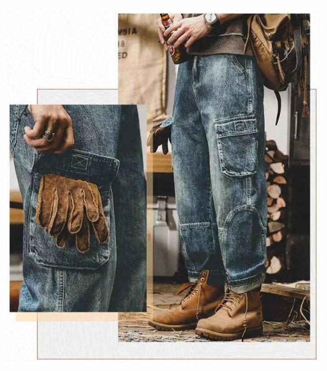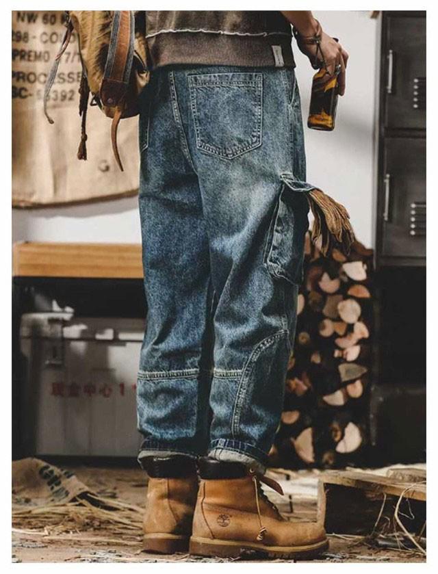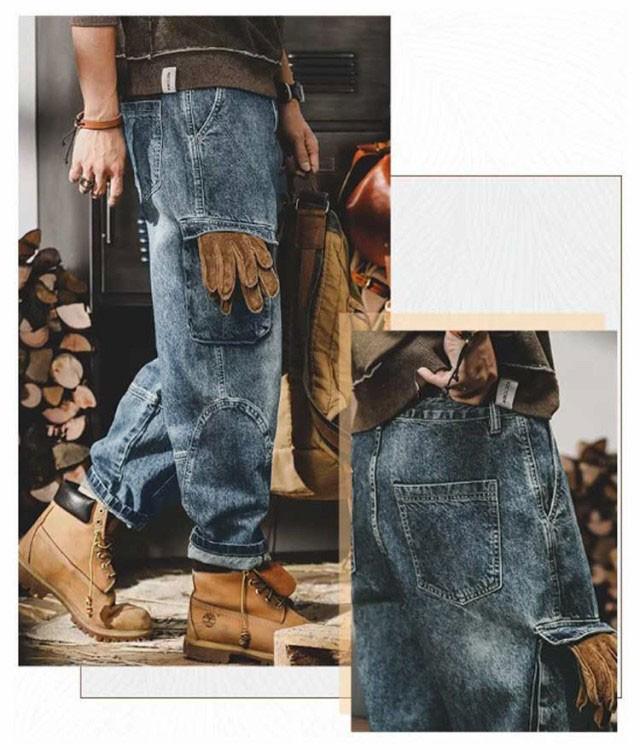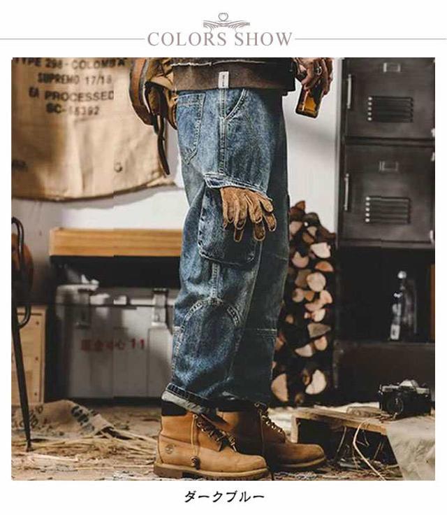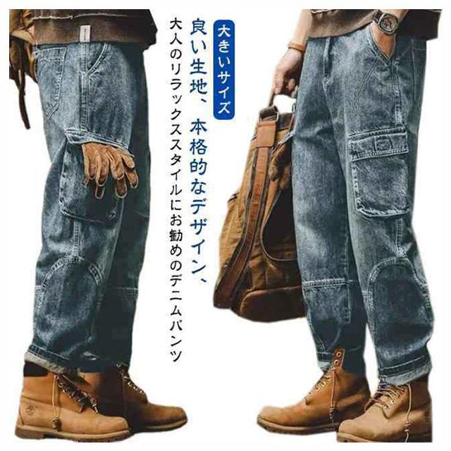 バギーパンツ ジーンズ 冬 メンズ カーゴパンツ 6ポケット 大きいサイズ ワイドパンツ デニムパンツ ゆったり ジーパン デニム 綿 コットン ダンス衣装 ヒップホップ ストリート 春 夏 秋 送料無料