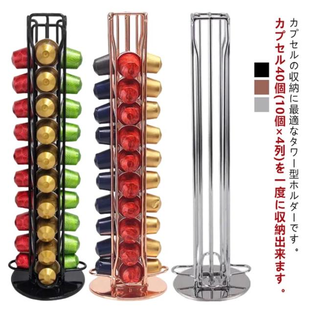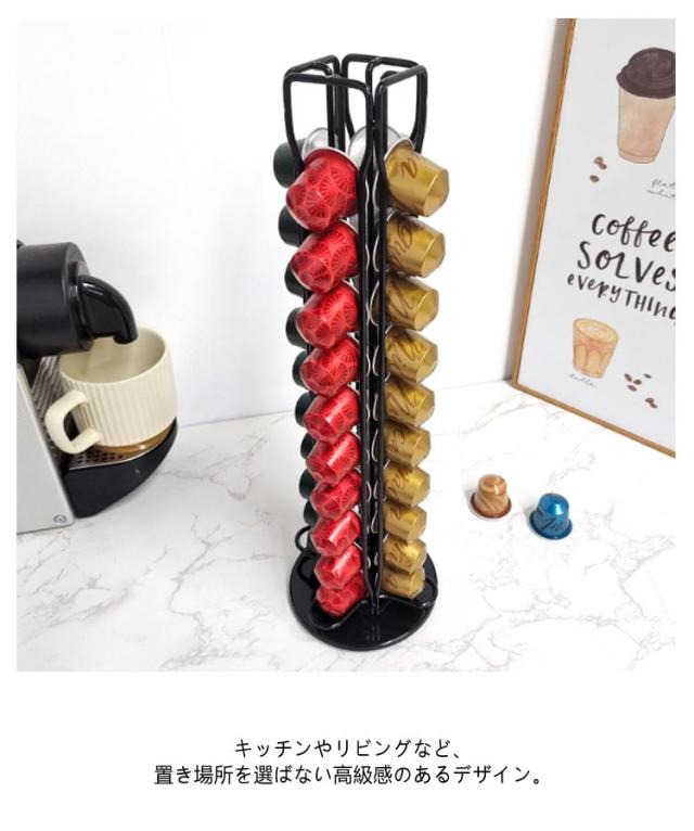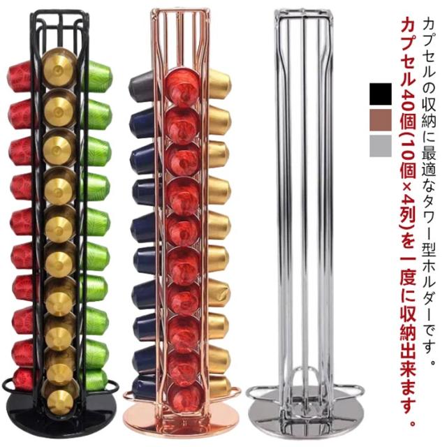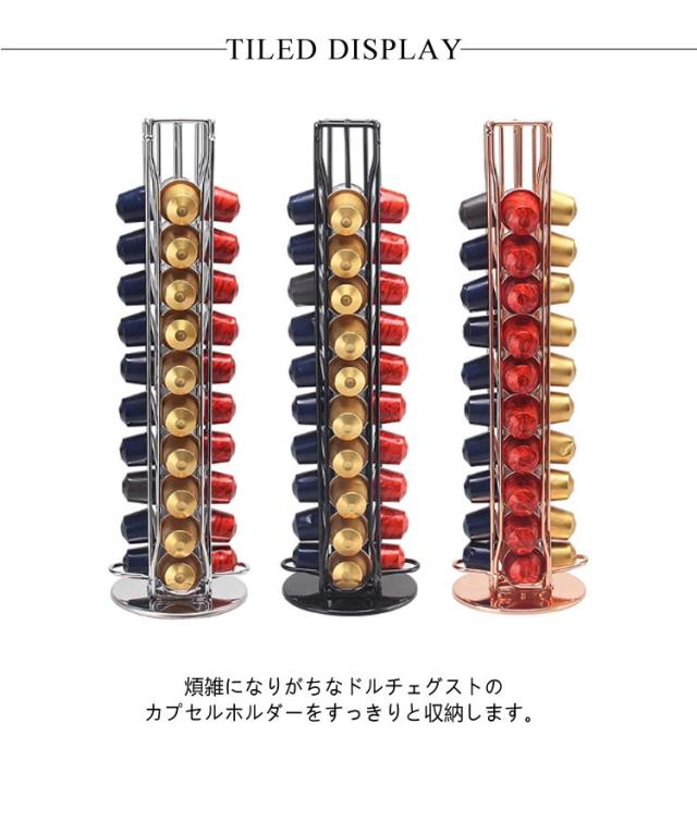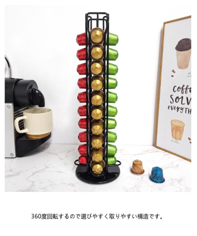 カプセルホルダー 最大40個収納 カプセル収納ケース 360度回転式 コーヒーカプセルホルダー ドルチェグスト用 収納スタンド カプセルケース コーヒー 収納ラック 縦型タワー カプセル収納 カプセルストレージ 省スペース おしゃれ