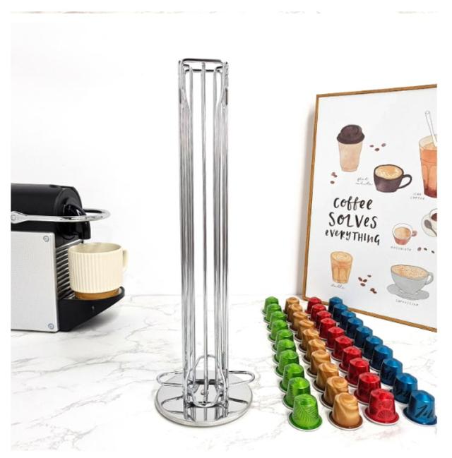 | カプセルの収納に最適なタワー型ホルダーです。カプセル40個(10個×4列)を一度に収納出来ます。 煩雑になりがちなドルチェグストのカプセルホルダーをすっきりと収納します。 360度回転するので選びやすく取りやすい構造です。 キッチンやリビングなど、置き場所を選ばない高級感のあるデザイン。 | |