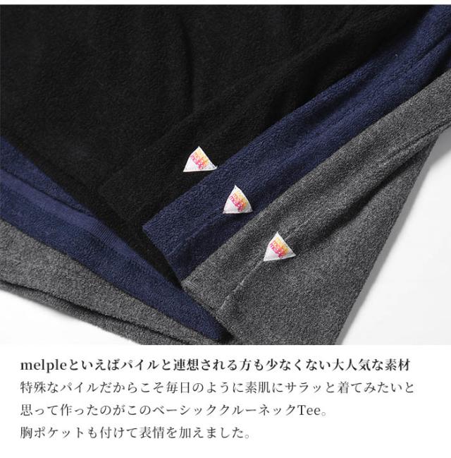 | 特殊なパイルだからこそ毎日のように素肌にサラッと着てみたいと思って作ったのがこのベーシッククルーネックTee。 胸ポケットも付けて表情を加えました。 melpleといえばパイルと連想される方も少なくない大人気な素材をUPデートしました。 |