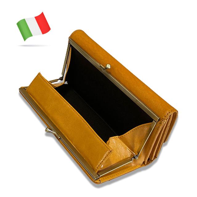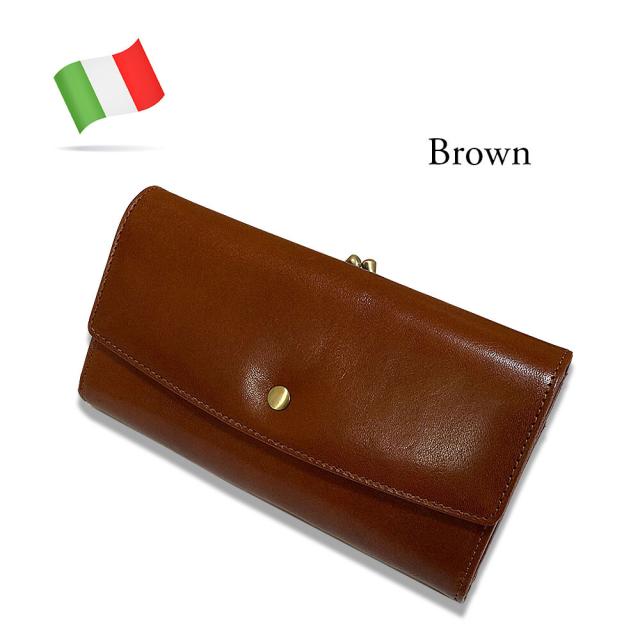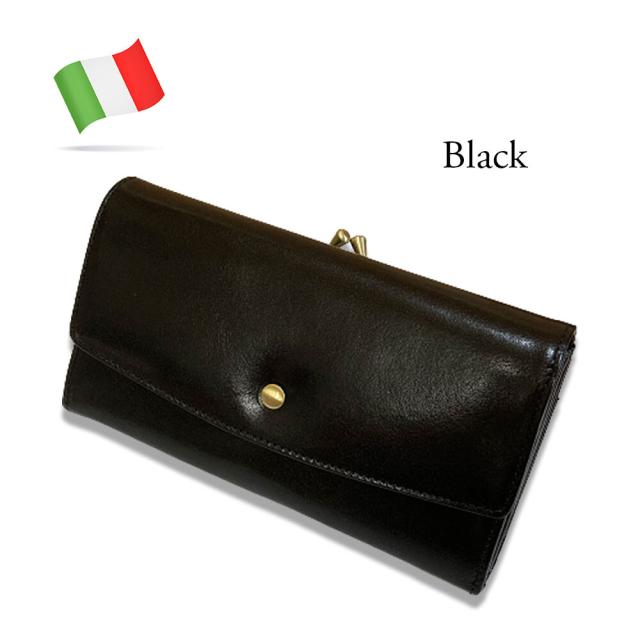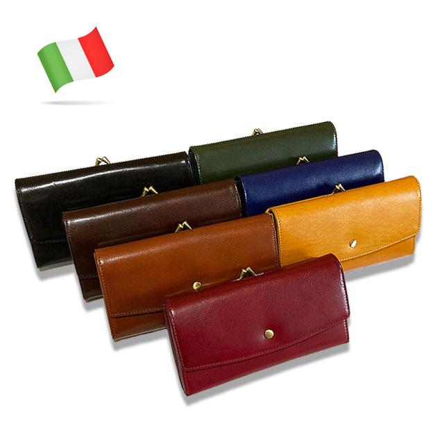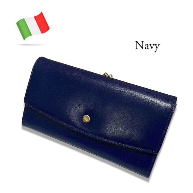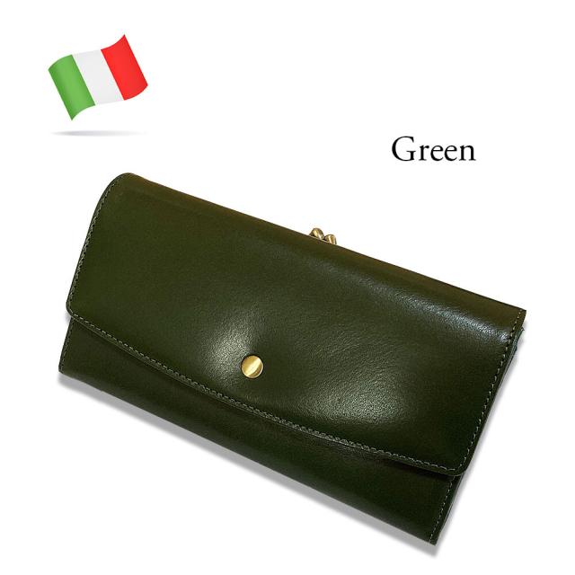 【送料無料】 イタリーレザー イタリアンレザー がま口 ロングウォレット カードたっぷり収納 メンズ レディース