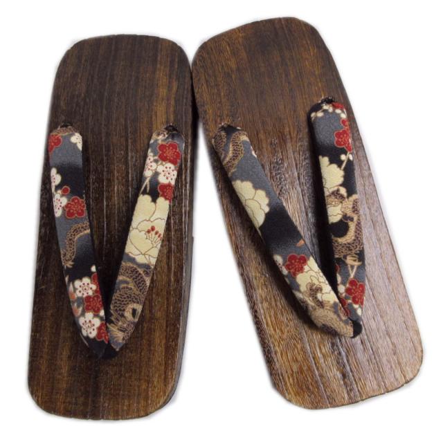 下駄 メンズ 男性 大きいサイズ 焼桐茶台 黒グレー地古典柄龍 LL 28cm 3L 29cm 浴衣 ゆかた 甚平 着物 男物 紳士用 2L げた ゲタ