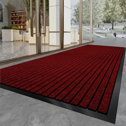 玄関マット業務用 家庭用 屋外室内 無地 大判 滑り止め防音手触り良いお手入れ洗える速乾(レッド 90*180)