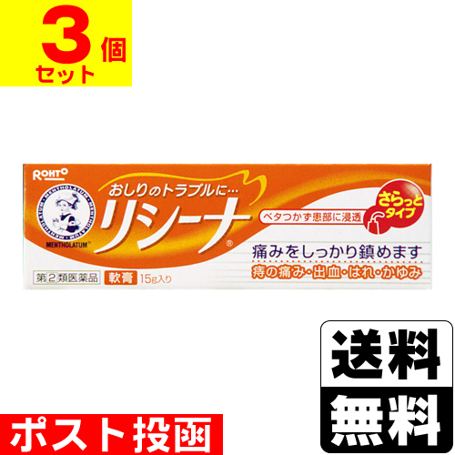 【第(2)類医薬品】■ポスト投函■[ロート製薬]メンソレータムリシーナ軟膏 15g【3個セット】