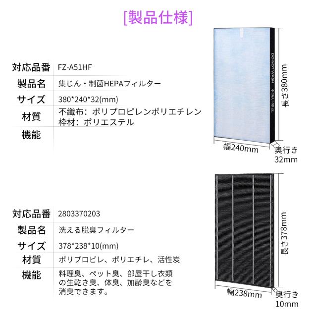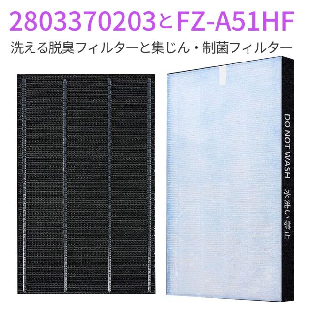 | シャープ空気清浄機対応 交換用フィルターセット、集じん・制菌HEPAフィルター FZ-A51HF と 洗える脱臭フィルター 2803370203 「互換品」