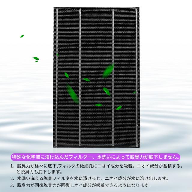 | ・機能: [内蔵活性炭、ナノテク脱臭] 料理臭、ペット臭、部屋干し衣類の生乾き臭、体臭、加齢臭などを消臭できます。 ・交換の目安:約3~5年。本品は消耗品です、使用時間や設置場所により交換時期は異なります。 ・使用環境によりフィルターの寿命が変化するため注意が必要。汚れが目立ち効果が落ちているようでしたら、速やかに交換することをおすすめいたします。 |