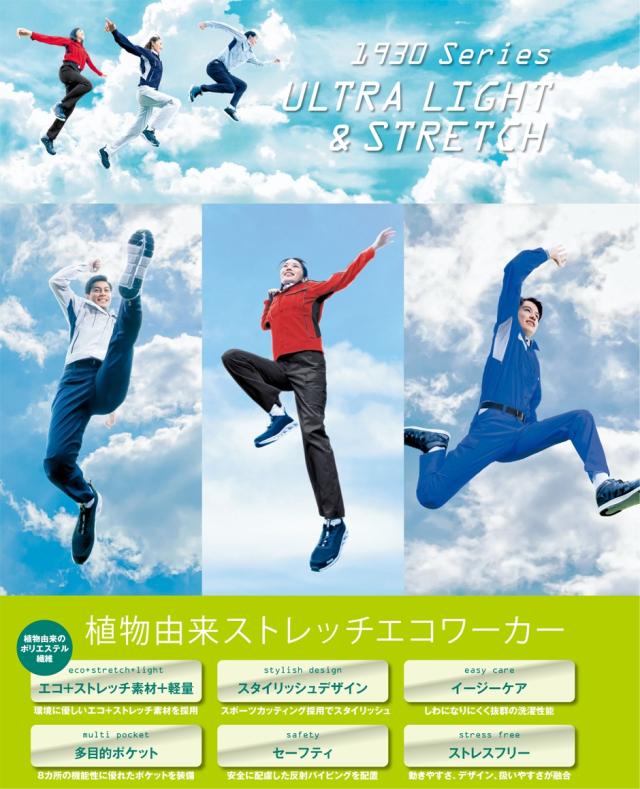 軽く、動きやすい、植物由来のエコマーク対応ストレッチ素材使用