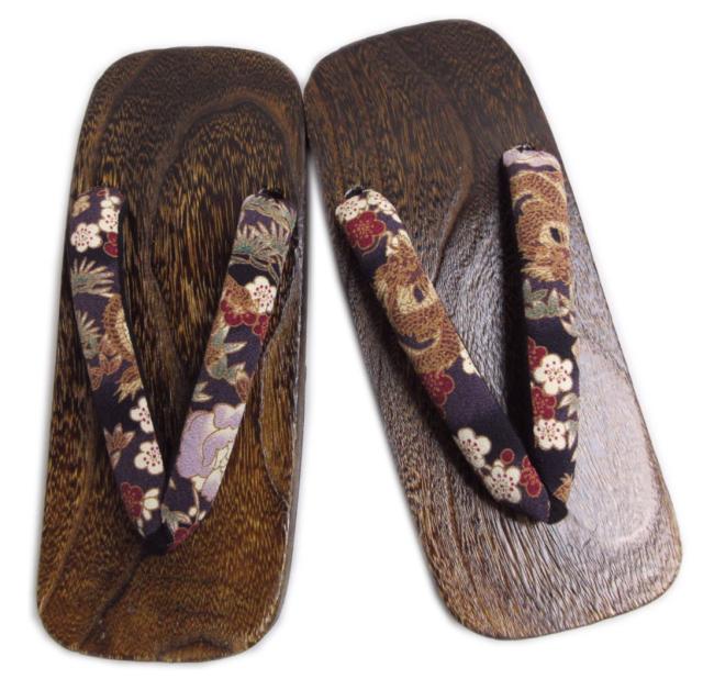 下駄 メンズ 男性 大きいサイズ 焼桐茶台 紫黒地古典柄龍 LL 28cm 3L 29cm 浴衣 ゆかた 甚平 着物 男物 紳士用 2L げた ゲタ