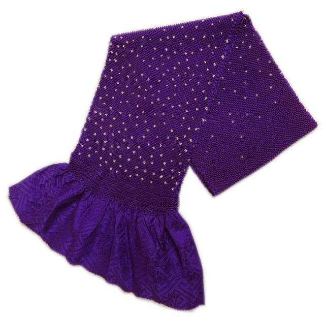 帯揚げ 帯上げ 総絞り 柄入り 正絹 濃紫色地ラメ銀ドット 振袖 成人式 着物 きもの 帯あげ しぼり 振袖用 シルク