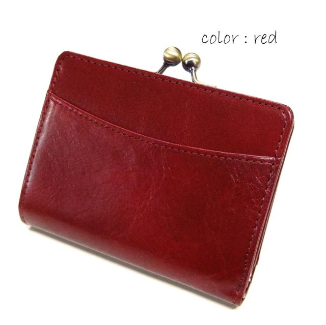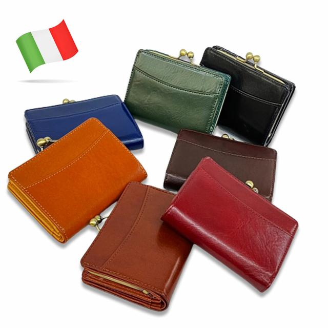 【送料無料】イタリーレザー イタリアンレザー がま口 ショートウォレット レディース