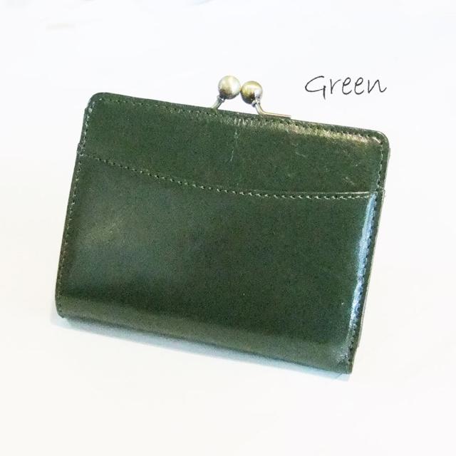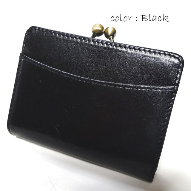 ガマグチの小銭入れがアクセントの使いやすい二つ折りタイプです。