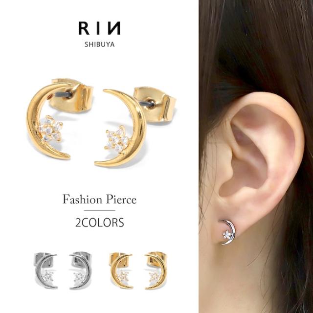 ピアス 18Kコーティング ムーン 三日月 星 スター CZ ストーン きれい スタッド 大人 女性 人気 結婚式 卒業式 卒園式 入園式 入学式 成人式 葬儀 贈り物 プレゼント ギフト 耳 耳たぶ ピアス 両耳用 メンズ 男女兼用 ユニセックス ジェンダーレス アクセサリー おすすめ ポイント消化 凛 ボディピアス専門店 りん 渋谷 アクセサリーカテ0145