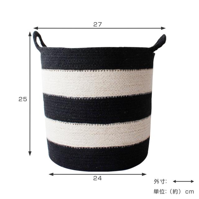 バスケット コディ ジュート ボーダーバスケット L 持ち手 ( 収納バスケット 直径36cm 高さ34cm かごバスケット カゴ かご 収納 麻 手編み 天然素材 日本製 収納かご 小物収納 小物入れ スリッパ おもちゃ リビング おしゃれ 丸 )