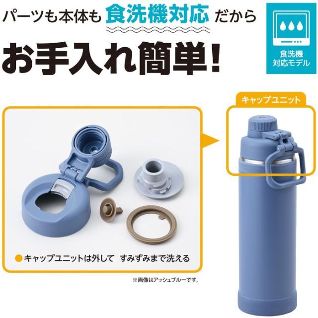 様々なシーンで持ち運びやすいキャリーループ付き!スポーツやアウトドアに。 ●持ち運びに便利なキャリーループ。 ●新機構設計の飲み口。 ●飲み口は外して洗える。 ●大きな氷も入れやすい広口。 ●食洗機対応。 ●握りやすいボディリング付き。 ●ボトルの底を衝撃から守るシリコーン製のソコカバー付き。 ●スポーツ飲料OK。
