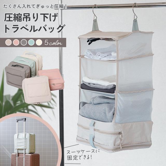 吊り下げ収納 トラベルポーチ 吊り下げ 圧縮 軽量 3段 大容量 収納ボックス 衣類仕分け 折りたたみ トラベルグッズ 収納ケース 収納バッグ 収納ポーチ 旅行用圧縮袋 トラベルバッグ バッグインバッグ クローゼット コンパクト 旅行 出張