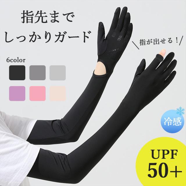 接触冷感 アームカバー 6色選べる 1ペア UPF50+ ロング 指先まで UVカット UV 紫外線 日焼け防止 手袋 春 夏 腕 二の腕 カバー 冷たい 冷感 涼しい ゴム ゆったり 夏用 SPF レディース 男女兼用 通勤 通学 アウトドア 運転 自転車 ゴルフ