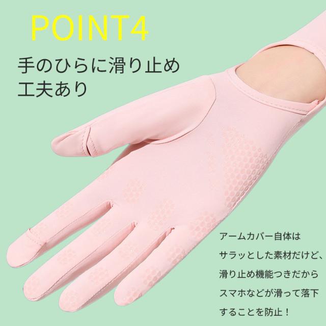 上腕から指先まで覆えるアームカバーなので、一般的なアームカバーと違い手首から上だけ焼けたり、指だけ焼けるなどの心配がありません!