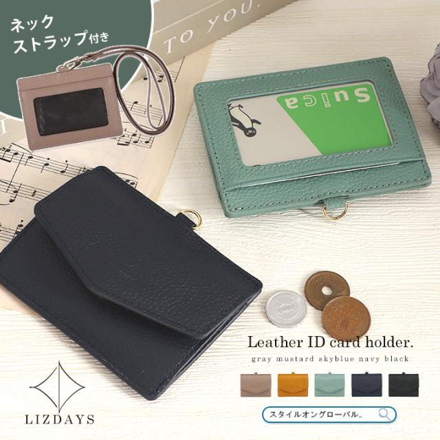 ネームホルダー idカードホルダー パスケース レディース メンズ カード入れ 本革 牛革 社員証 ケース カードホルダー ネックストラップ おしゃれ LIZDAYS リズデイズ 大人 カードケース 横型 ホルダー ポケット付き 定期入れ icカード 2枚 シンプル【lz-66109】