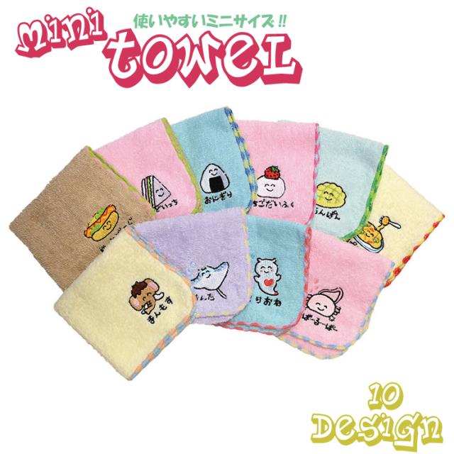 【6点までメール便280円対応】ミニタオル おえかきさん ハンカチ ハンドタオル 10種類 お手拭き 生活雑貨 日用雑貨【キャラクター ワンポイント 可愛い 肌触り 吸水性 キュート キッズ 通園 通学 】┃