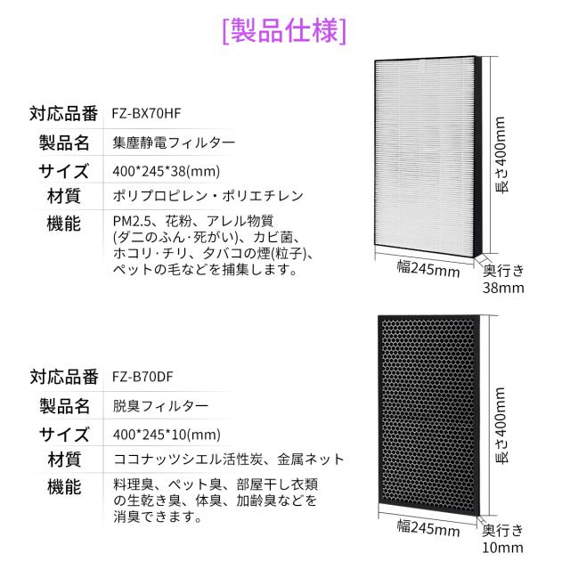 シャープ 集じんフィルター FZ-BX70HF 脱臭フィルター FZ-B70DF 加湿空気清浄機 交換用フィルター (互換品/1セット)