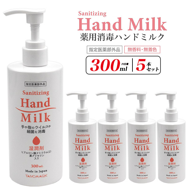 5本セット 薬用消毒ハンドミルク 300ml 無香料 無着色 指定医薬部外品 手や指のウイルスや細菌を消毒 店舗 オフィス 玄関 入口 プッシュタイプ 手の消毒 指の消毒 洗浄 手指 お手軽 ご家庭 5個セット 大容量 衛生関連 衛生用品 潤い 保湿成分 送料無料