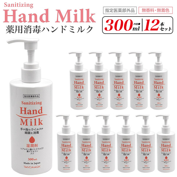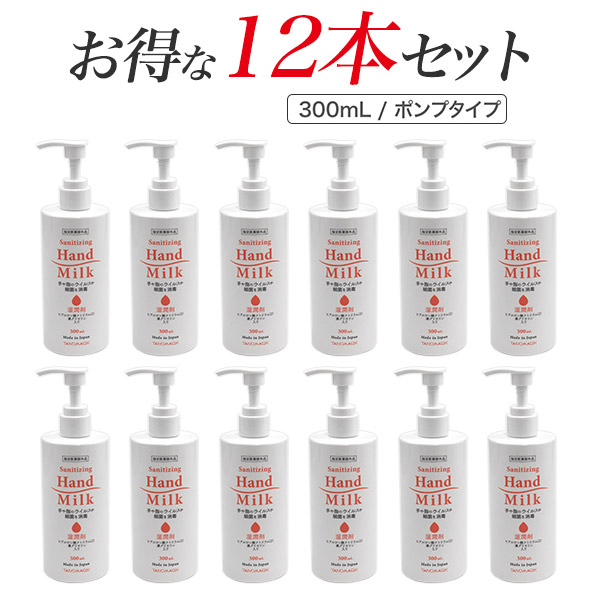 12本セット 薬用消毒ハンドミルク 300ml 無香料 無着色 指定医薬部外品 手や指のウイルスや細菌を消毒 店舗 オフィス 玄関 入口 プッシュタイプ 手の消毒 指の消毒 洗浄 手指 お手軽 ご家庭 12個セット まとめ買い 大容量 衛生関連 衛生用品 潤い 保湿成分 送料無料