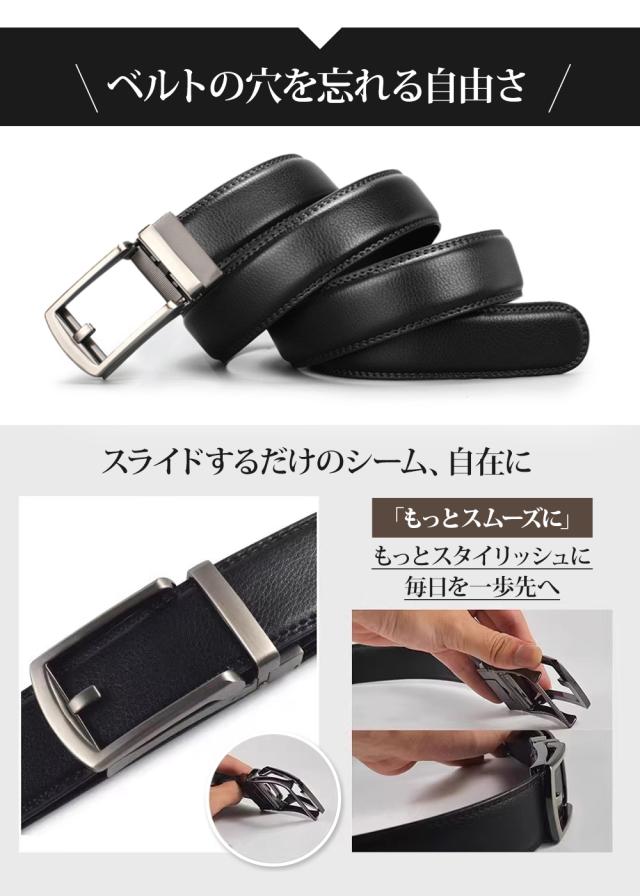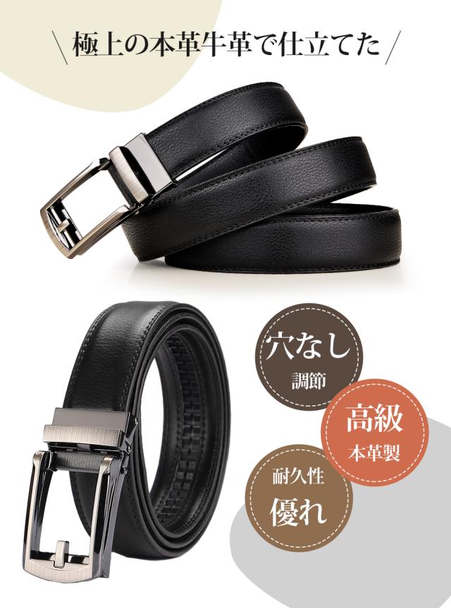 ベルト メンズ 穴なし 本革ベルト 32段階 長さ125cm ビジネス 紳士 本革 レザー 紳士 スーツベルト 無段階