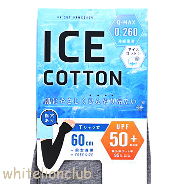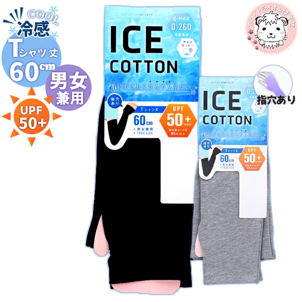 uv アームカバー ICE COTTON 指穴あり アイスコットンTシャツ丈 60cm 男女兼用 | 紫外線対策 UVカット UPF50+ 日焼け防止 日焼け対策