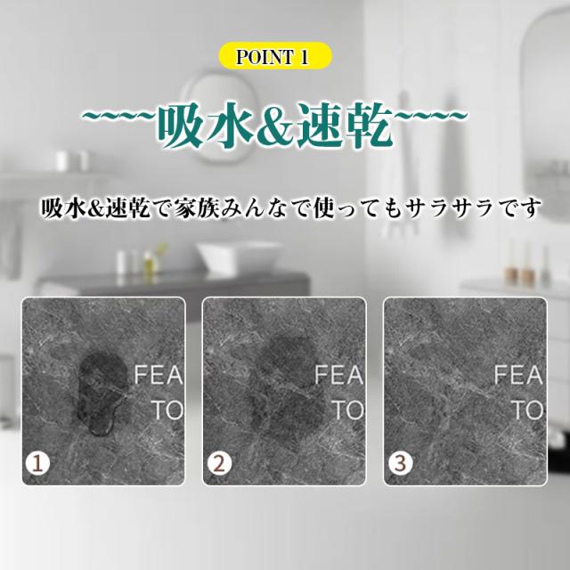 まるで吸い付くような踏み心地ですぐに乾く、家族みんなで使ってもサラサラです。
