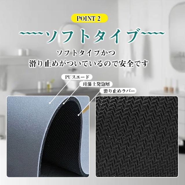 バスマット 珪藻土 ソフト やわらか 洗面台 足拭き お風呂 水切り キッチン マット ペット おしゃれ 北欧 大判 速乾 吸水 洗える 猫 収納 浴室 無地 韓国 グッズ