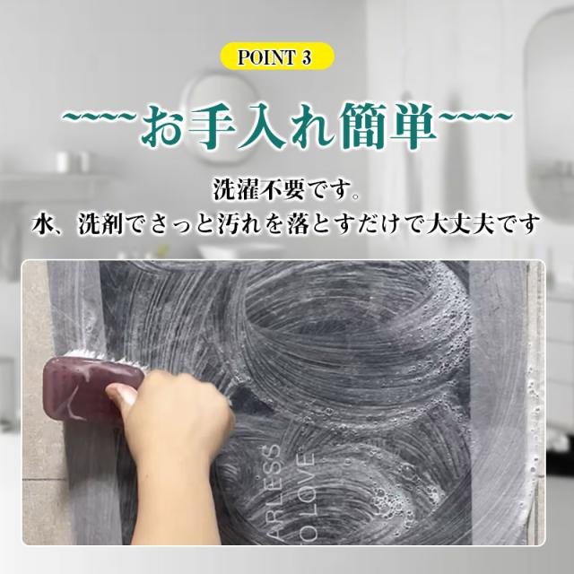〇洗濯不要。水や洗剤で汚れをさっと落とすだけで繰り返し使えますので