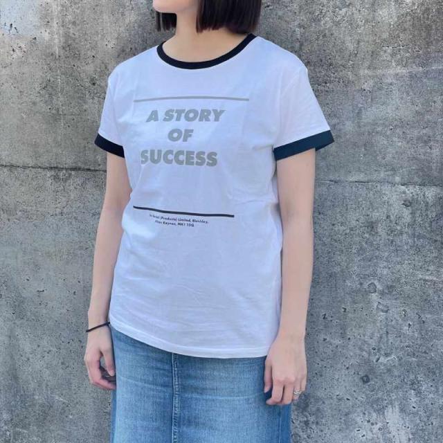 SUCCESS 襟&袖の黒縁とシンプルなモノトーンプリントのコントラストが美しい、スタイリッシュなデザインのレギュラー/スリムフィットのレディースTシャツ
