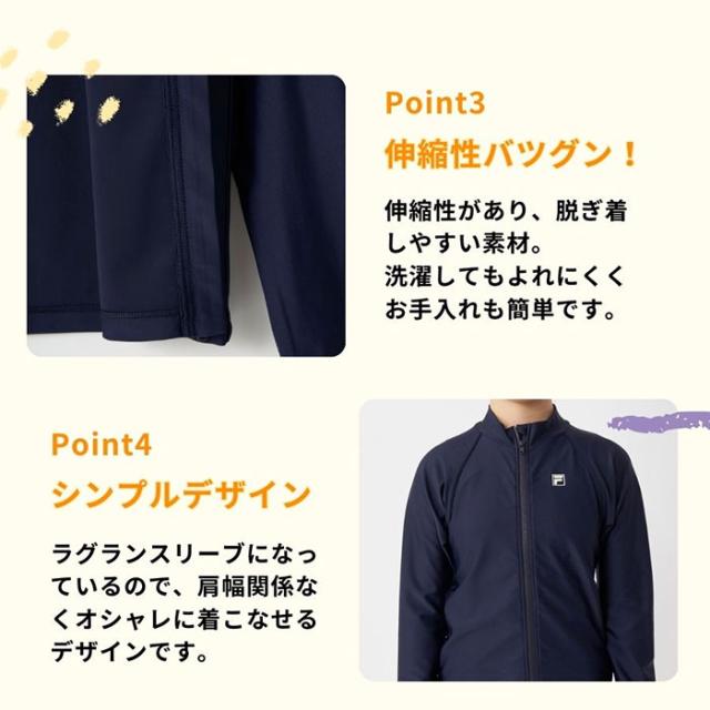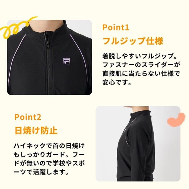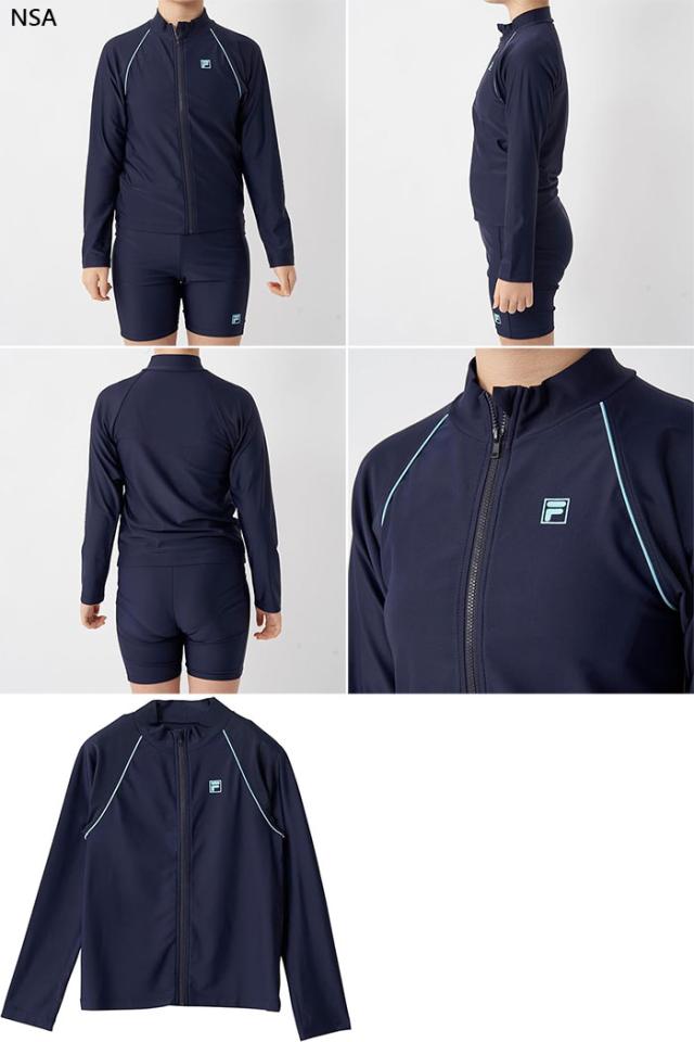 フィラ ジュニア キッズ 長袖フルZIP ラッシュガード スイムウエア スイミング 水泳 スクール 長袖 スイミングスクール 学校 ブラック 黒 ネイビー 送料無料 FILA 174100