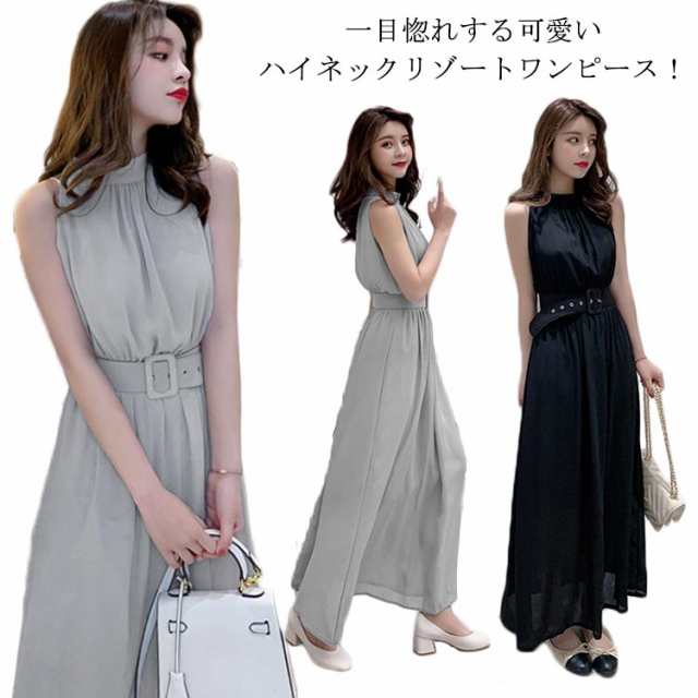 マキシ丈 マキシワンピ ワンピース ノースリーブワンピース ハイネックマキシワンピース シフォンワンピース 夏ワンピース ビーチワンピ