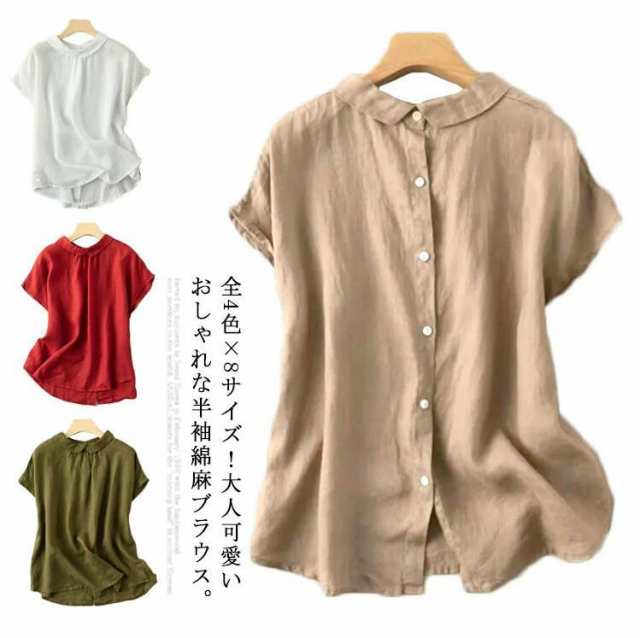 人気急上昇 数量限定入荷 シンプル レディース 在庫限りの大特価 品質安心 在庫わずか ブラウス 後ボタン カジュアル 丸襟ブラウス バック開き 可愛い 半袖ブラウス 後開き SNS話題 綿麻