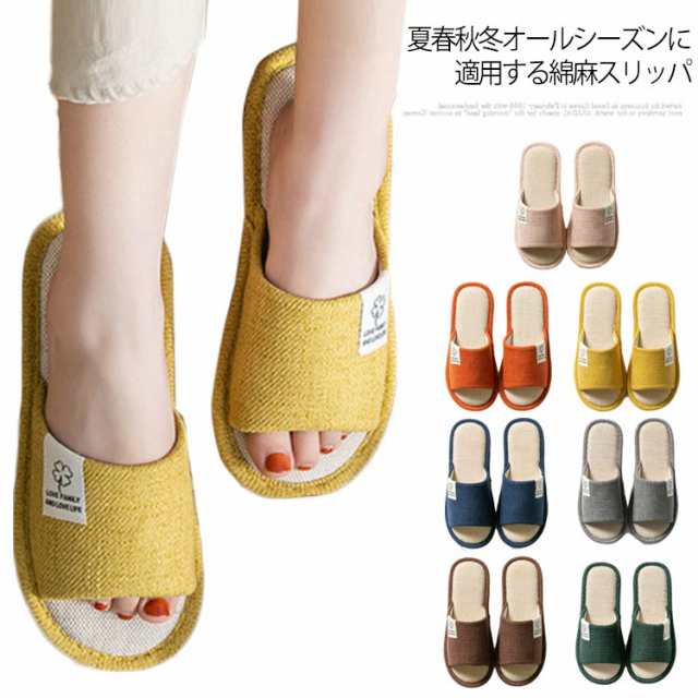 ルームシューズ レディース メンズ 綿麻 前開き 蒸れない スリッパ サンダル 北欧 室内 室外 ルームシューズ コンフォートスリッパ 春夏