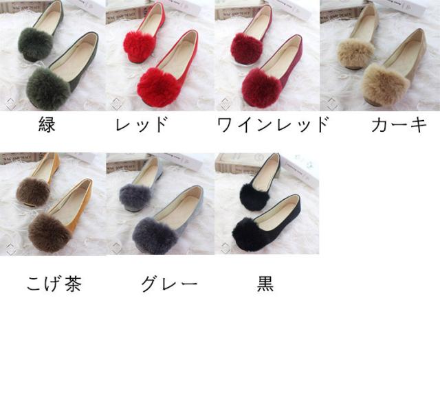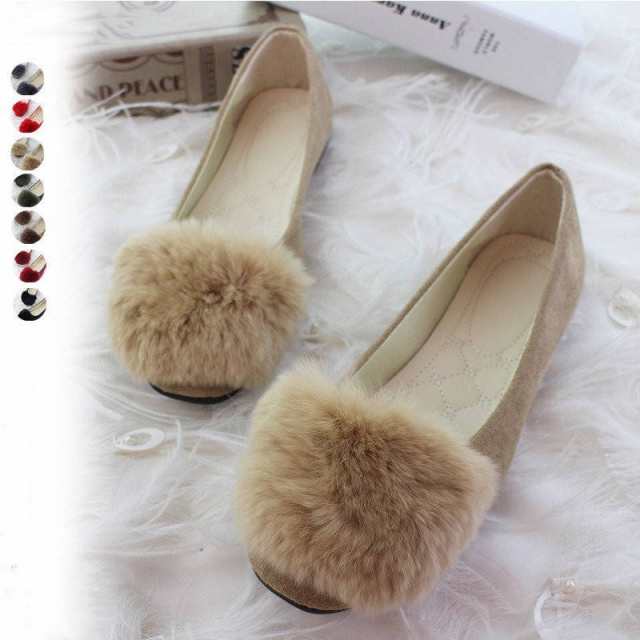 パンプス ファー 秋 レディース ローファー フラットシューズ ラウンドトゥパンプス ポンポン ぺったんこパンプス シューズ 楽チン 可愛