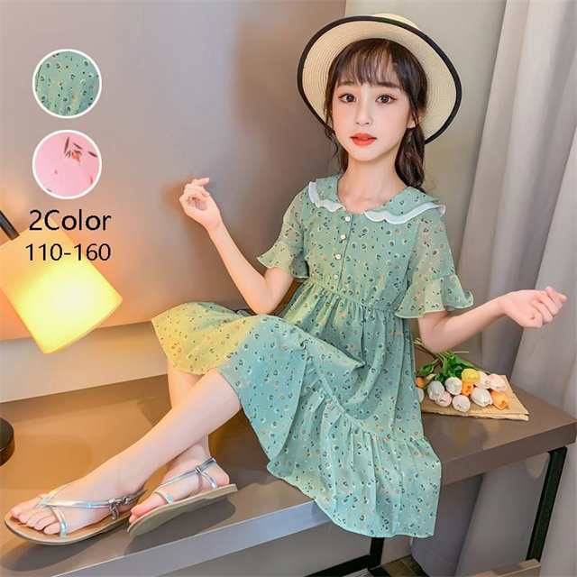 ワンピース 女の子 半袖 花柄 膝丈 ひざ丈 おしゃれ きれいめ 子ども服 ゆったり 女児 夏 発表会 卒園式 人気 い通学 新作