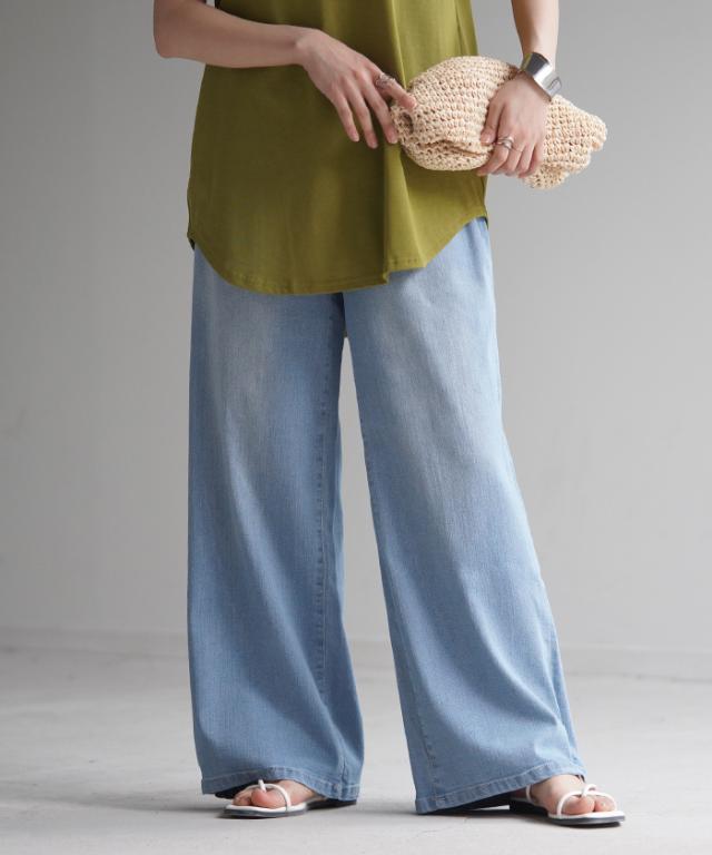 涼しくサラッと穿ける吸水速乾・接触冷感の機能を持ったデニムワイドパンツです。