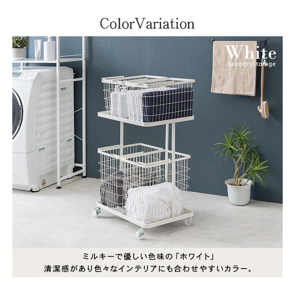 色柄物や汚れた洗濯物を分けて溜められるランドリーワゴン。