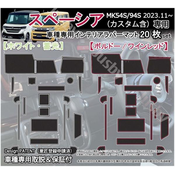 スペーシア (カスタム/ギア) MK54S MK94S インテリア ラバーマット ゴムマット (ホワイト/ワインレッド/オレンジ) フロア 内装パーツ アクセサリー SPACIA