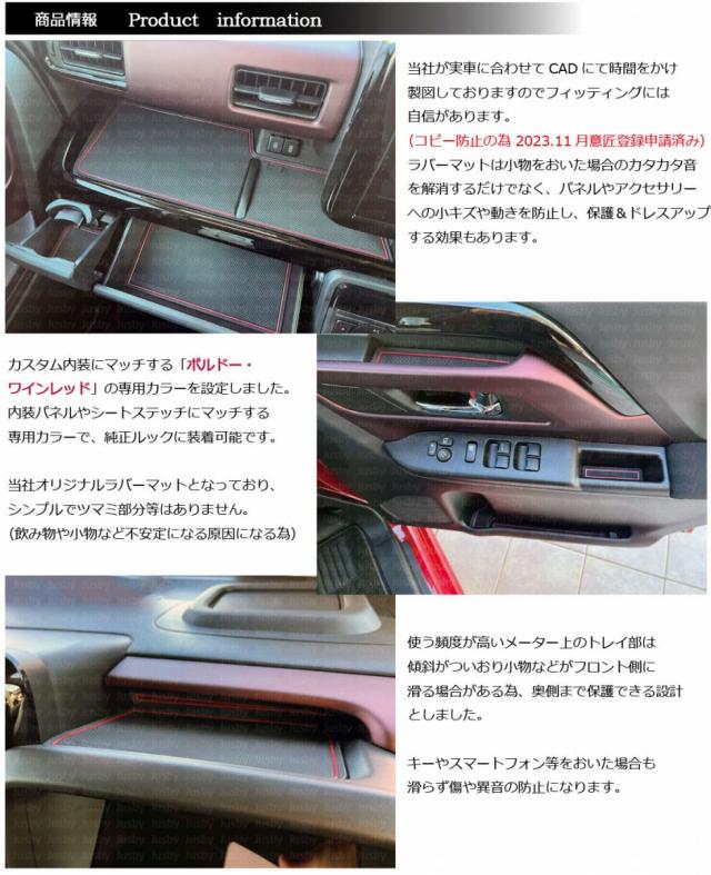 新型になり車内が先代以上に静かになった事もあり小物が動いた際などパネルと干渉・異音等が発生しやすい為是非当マットで保護&ドレスアップをお勧めいたします。