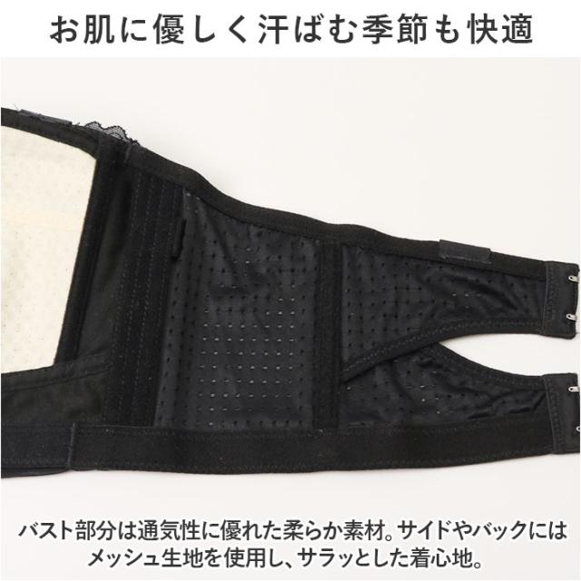 | 商品説明 | ・バストのボリュームを抑えてすっきり♪チューブトップにもなり、コーデの幅が広がるブラが新登場。 【グラマーさんのお悩みを解決】 ・バスト全体をしっかり包み込んで、バストトップが目立ちにくい仕様。厚みのあるパッドなどは入っておらず、大きなバストもキレイに収めてくれる♪ 【締め付け感がなくストレスフリー】 ・アンダー部分はノンワイヤー仕様で、締めつけ感が苦手な方にぴったり。 【お肌に優しく汗ばむ季節も快適】 ・バスト部分は通気性に優れた柔らか素材。サイドやバックにはメッシュ生地を使用し、サラッとした着心地。 【シルエットをキープする脇高設計】 ・程よい硬さのサイドボーンが入った、脇高仕様。バストの揺れを抑えて横流れを防止し、背中もすっきりキレイ魅せ。 【ズレにくく安定感ばっちり】 ・背面2箇所のホック&内側ゴムベルトで、フィット感抜群。ホックは4段階サイズ調節可能。 【ストラップはお好みでアレンジ】 ・食い込みにくく、肩にかかる負担を軽減する幅広ストラップ。付け外しできるので、オフショルダーなどにはチューブトップ仕様で♪ 【お好みのコーデを諦めない♪】 ・薄着の季節もバストが目立ちすぎず、お気に入りの洋服を諦めず着られるのが嬉しい! 【上品さをプラスした大人のブラ】 ・フロントにレース素材を重ねた女性らしいデザイン。リボンやクリアビーズがアクセント。 |