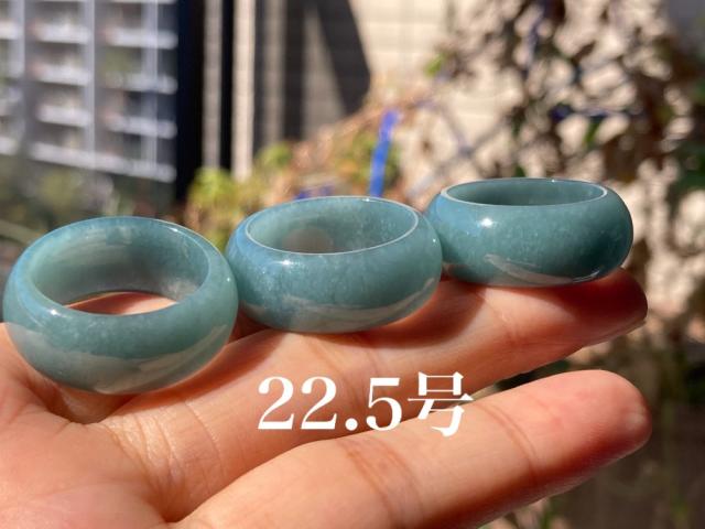 L157 藍水 22.5号 天然 グアテマラ産 本翡翠 くりぬき 広幅 リング 板指