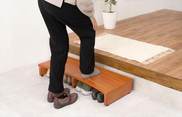 玄関 踏み台 60cm 通販 VH-7932-60 ステップ 玄関台 ステップ台 玄関踏み台 足置き 靴 脱ぎ 台 収納 高さ13.5cm 天然木 洗面所 デスク下 足元 足もと 足下 高さ調節 アジャスター付き 靴を履く台 家具 インテリア